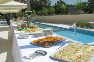 La “CUCINA MEDITERRANEA” si propone con specialità di mare e di terra per accontentare le esigenze di ogni palato. Gli esperti chef scelgono piatti ricchi in stile moderno accostati sempre nel modo giusto e impreziositi da elementi decorativi sorprendenti. Durante la scelta del menu sarà possibile accordare le varianti riservate agli ospiti portatori di patologie intolleranti o allergie alimentari.
